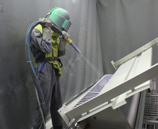 Jateamento Comercial – Padrão Sa 2: Jateamento cuidadoso a fim de remover praticamente toda a laminação, óxidos e partículas estranhas. Caso a superfície possua cavidades (pites) apenas ligeiros resíduos poderão ser encontrados no fundo da cavidade, porém 2/3 de uma área de 1 polegada quadrada deverão estar livres de resíduos visíveis. Após o tratamento a superfície deve apresentar uma coloração acinzentada.